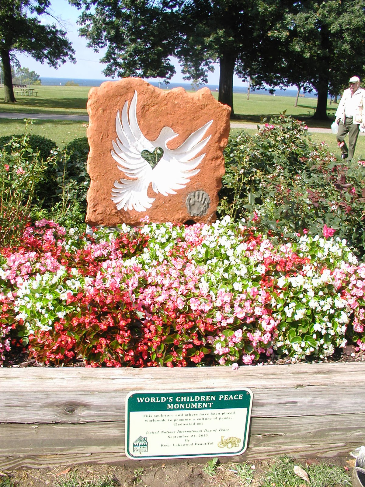 "The Worlds Children Peace Monument (WCPM) and the Great American Peace Trail (GAPT) Projects are international, public participatory art projects designed to engage children with cross-cultural awareness in order to attain the common goal of sharing peace and diversity with their neighbors. The peace projects, utilizing the principles of the 'Theory of Iceality on Environmental Arts' have direct community impact through neighborhood beautification, community and economic development while building self-esteem and hope in America. They will help to build better neighborhoods where everyone can live, respect and accept each other as they diplomatically negotiate errors and differences of prejudice and hatred and instill in its place the belief in the necessity of communication." American Cultural Ambassadors David and Renate Jakupca.